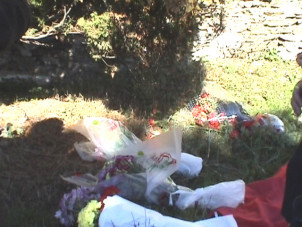 INICIO LUGARES DE MEMORIA Cementerio de Tineo - Asturias Acto en el cementerio de Tineo ante las fosas de los asesinados por el franquismo. 7/11/2003.